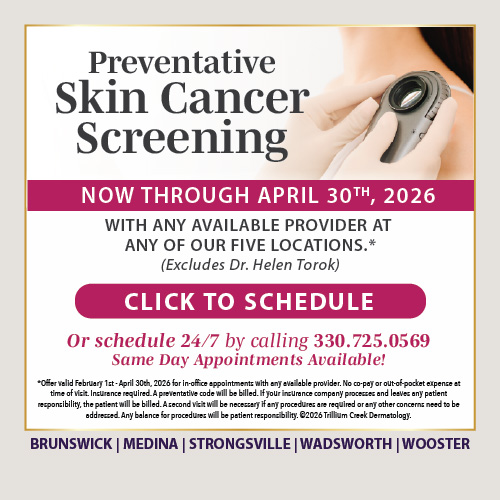 Contact the skin experts at Trillium Creek Dermatology for tailored skincare advice and personalized recommendations. With locations in Brunswick, Medina, Strongsville, Wadsworth, and Wooster, Ohio, their experienced team can guide you toward optimal skin health. Please schedule a consultation today and embark on a journey towards radiant, protected skin.